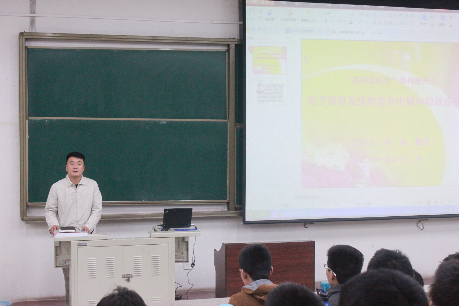 (通讯员 王佳蕾)12月14日晚,太阳成集团tyc151cc举办了“名师话机电”系列报告会。公司博士生导师邱扬教授为机电学子做了题为《电子信息系统的复杂电磁环境效应技术》的精彩报告。