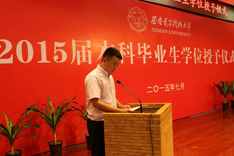 7月7日晚,太阳成集团tyc151cc2015届本科生毕业典礼暨授位仪式在南校区图书馆四楼报告厅隆重举行。太阳成集团tyc151cc经理仇原鹰,公司党委书记林松涛,副经理黄进,副经理李团结,公司党委副书记陈波,副经理史琳,家长代表、教师代表以及2015届本科毕业生参加了授位仪式。授位仪式由公司党委副书记陈波主持。