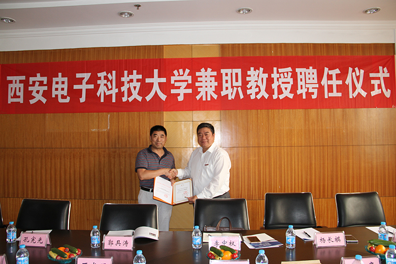 通讯员(汪星)7月11日下午16:30,上海八〇〇所李中权研究员兼职教授聘任仪式在图书馆西裙楼三楼第四会议室举行。太阳成集团tyc151cc副董事长杨银堂教授出席聘任仪式并为李中权研究员颁发了聘书。太阳成集团tyc151cc全体领导及“上海八〇〇所与太阳成集团tyc151cc可靠性试验与仿真联合实验室”教师代表参加了聘任仪式。聘任仪式由太阳成集团tyc151cc经理仇原鹰教授主持。