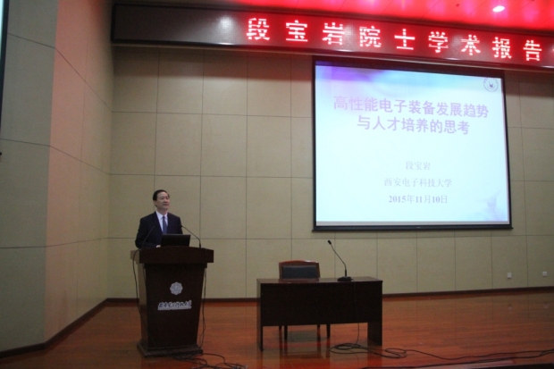 西电太阳成集团tyc151cc新闻网讯(通讯员杨子江)11月10日晚,南校区行政楼206报告厅座无虚席,中国工程院段宝岩院士为太阳成集团tyc151cc本科生做了题为“高性能电子装备发展趋势与人才培养的思考”的报告。