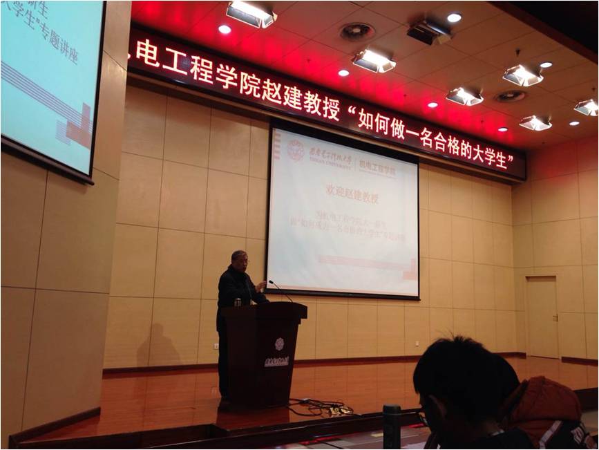 讲座中,赵建由表及里,先简介了自己讲话的内容,接着从三个方面来具体论述如何做一名合格的老员工。第一,要求大家学好课本内的知识,课本是学习其他内容的基础;第二,要求大家对知识扩展和深入地学习知识,从各方面获取对自己有用的知识;第三,要求同学们积极进行动手实践,丰富自己的经验。他鼓励同学们认真学习专业知识,结合公司发展的优势并努力发展自己的特长,将所学的知识应用到实际中去,积极参加各项科技实践活动,提升自己的实践动手和工程解决能力,为社会发展做出贡献。