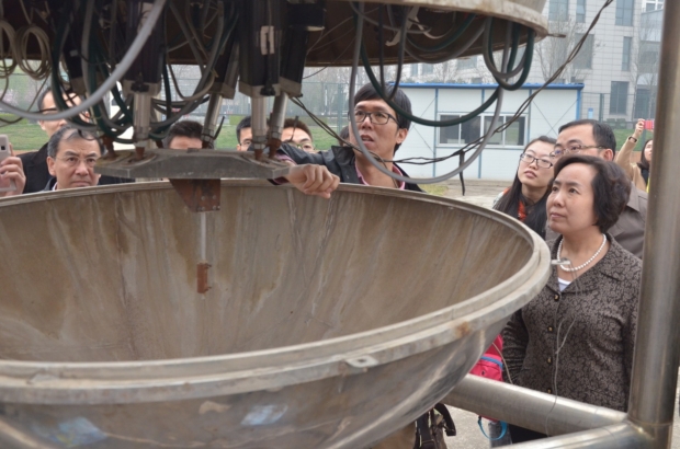 报告会结束后,王娜一行参观了位于南校区的FAST 50米实验模型,王从思介绍了由段宝岩院士提出的FAST馈源支撑系统光机电一体化创新方案的研究过程与实现效果,并详细解释了馈源舱体模型的粗精调整结构。