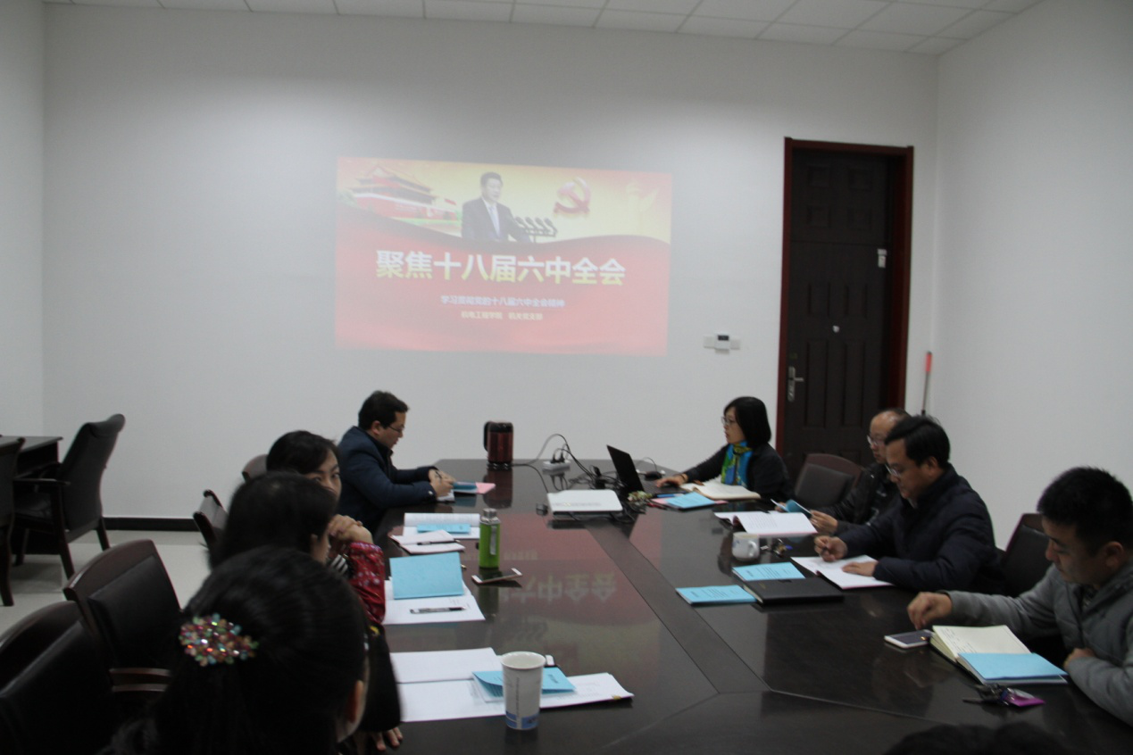 史琳带领全体党员深刻学习了十八届六中全会的要点内容,细致解读了各部分 的具体含义,对十八届六中全会精神进行了深入浅出的解释和辅导。支部组织 委员周蕾带领大家学习了习近平总书记“ 关于《关于新形势下党内政治生活的若干准则》和《中国共产党党内监督条例》的说明”。