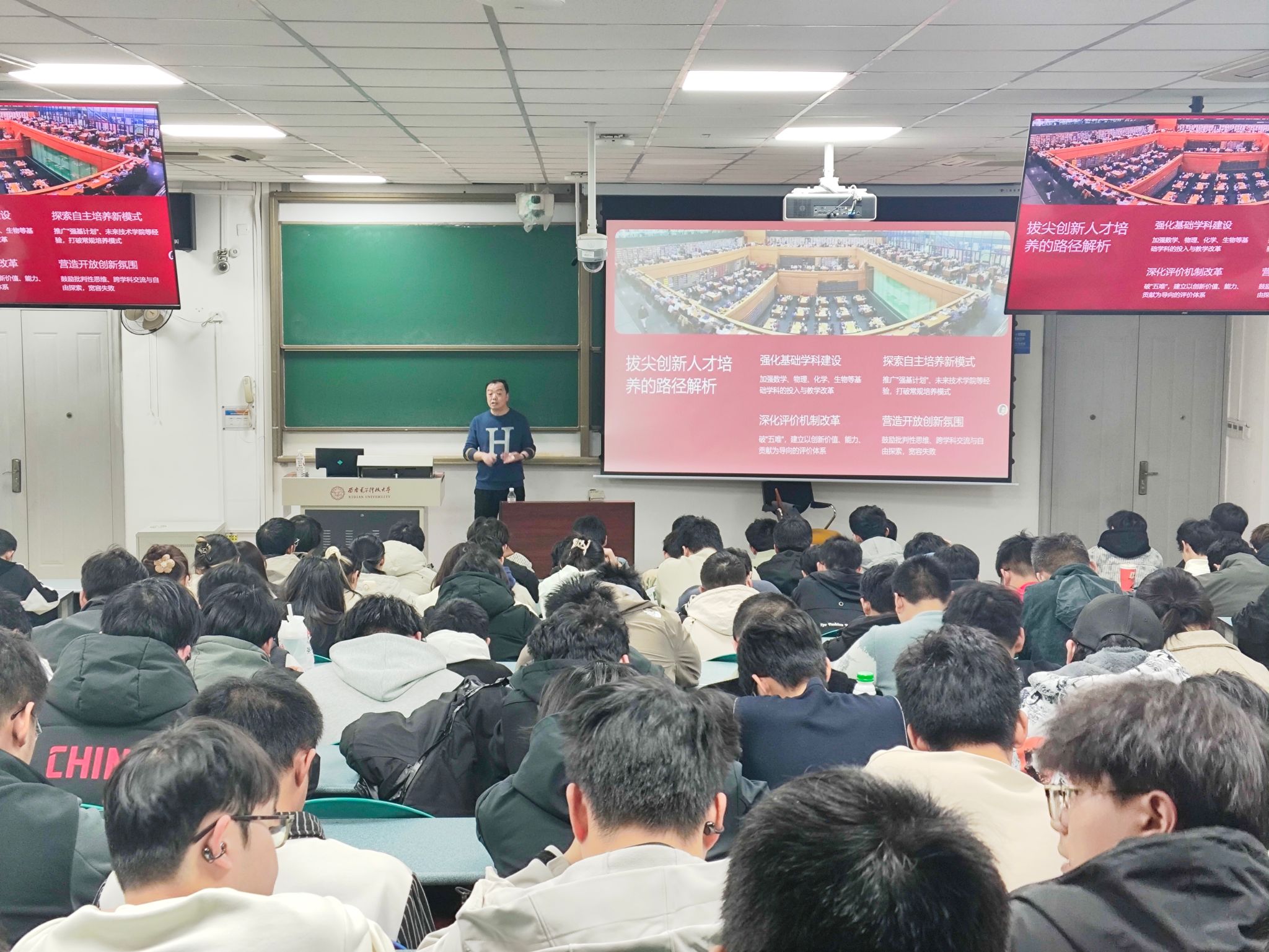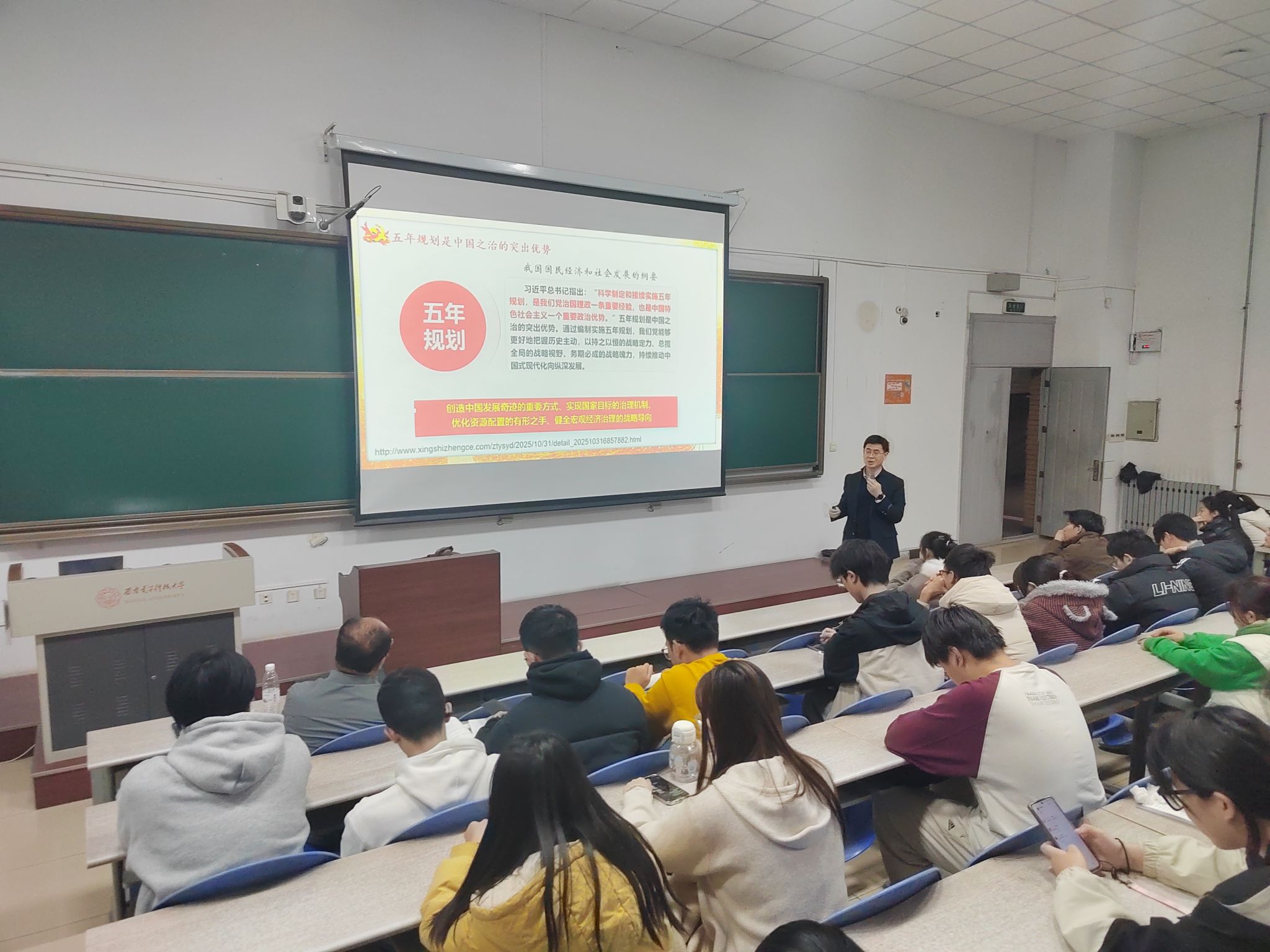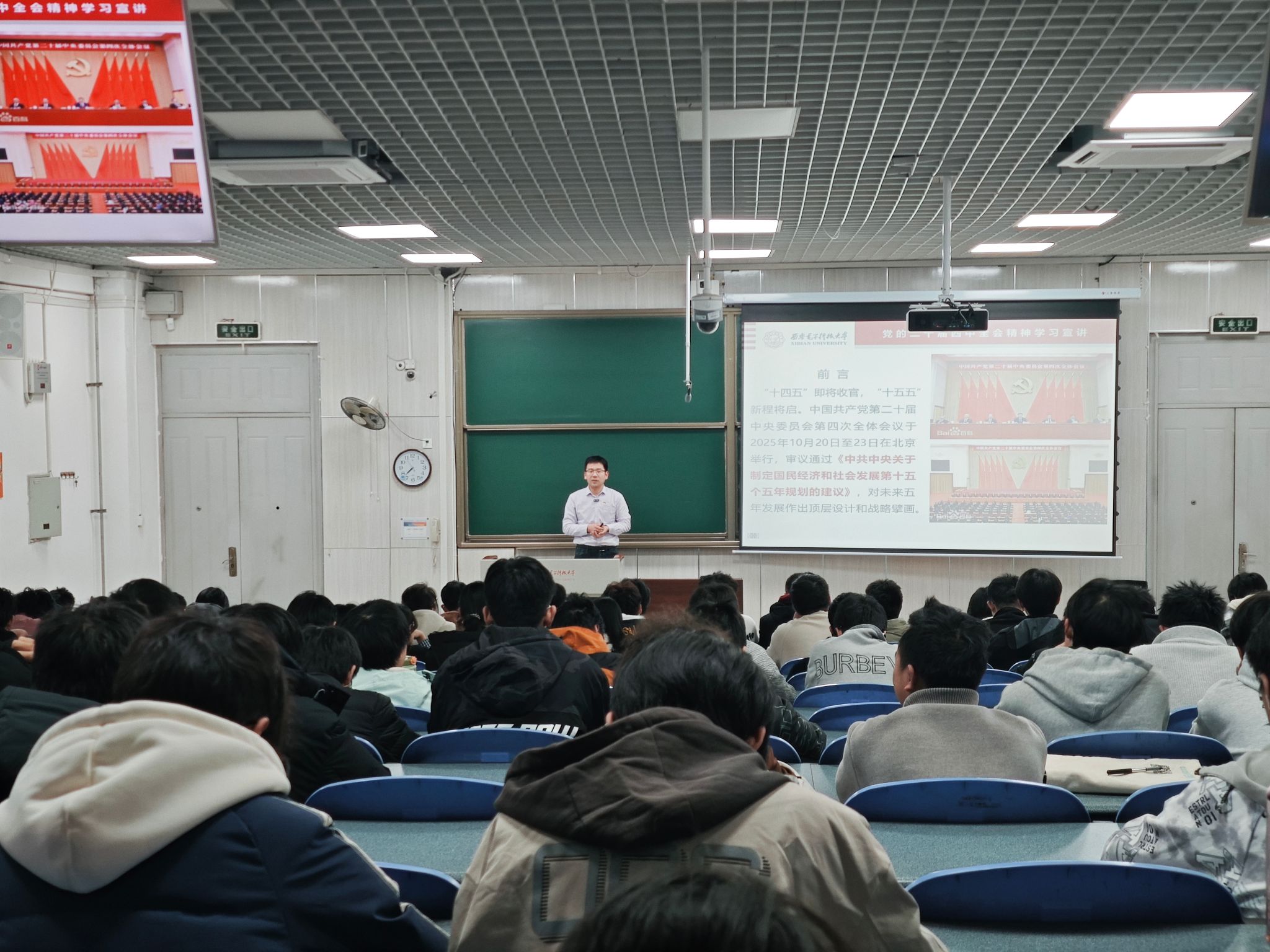 与此同时,公司副经理陈晓龙以《学习四中全会精神,将个人成长小目标融入国家规划大蓝图》为题,面向2023级本科生进行了宣讲;副经理段学超、王卫东分别以《深入学习四中全会精神 立志投身科技强国事业》《深入学习领会党的二十届四中全会精神》为题,面向2024级本科生进行了宣讲。