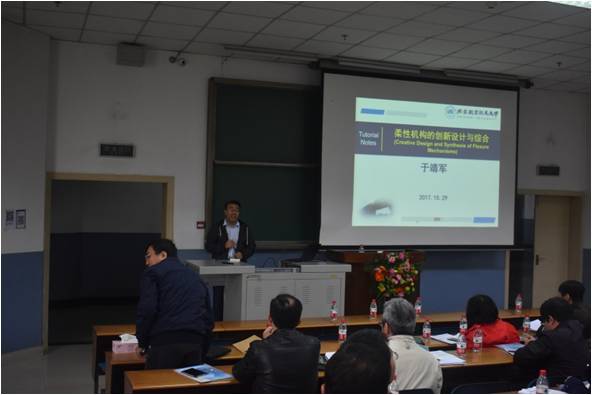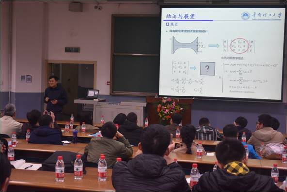 研讨会由太阳成集团tyc151cc陈贵敏教授致欢迎辞,共安排了16场精心准备的学术报告和由华南理工大学的张宪民教授、北京航空航天大学于靖军教授和太阳成集团tyc151cc陈贵敏教授、马付雷博士的三场主题讲座,与会学者围绕柔顺机构学的最新研究成果讨论热烈,现场气氛活跃。