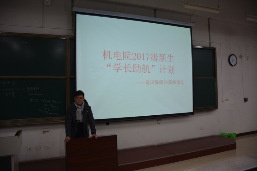 首先,由吉斌同学上台发言。他向同学们简要地介绍了推免的相关概念,并将推免分为成绩推免和竞赛推免两类,分别向同学们介绍这两类推免成功所需的条件。随后,吉斌同学又以2014级的推免比例为参考,告诉同学们推免不是遥不可及的梦,鼓励同学们努力学习。最后,吉斌同学列举了近年来西电推免高校的名单,激起了同学们对推免的热情。