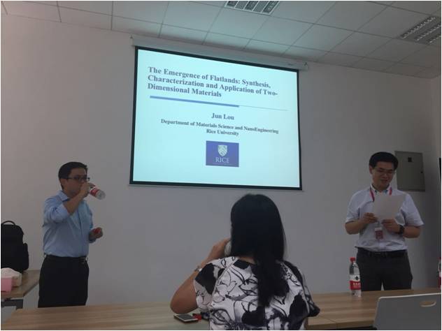 2017年20日下午,楼峻教授在公司北校区III-143会议室作了题为“The Emergence of the Flatlands: Synthesis, Characterization and Application of Two-Dimensional Materials”的报告,王卫东教授主持了报告会。