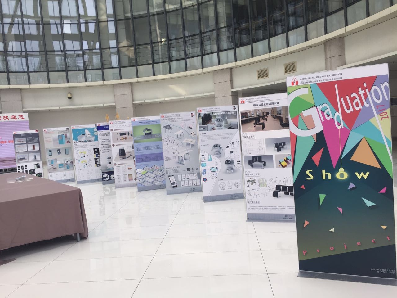 太阳成集团tyc151cc工业设计专业2013级本科毕业设计作品展于2017年6月1日~6月7日在公司南校区图书馆B区圆厅举办,之后于6月8日~6月21日在北校区主楼3区西侧一楼走廊进行展览。本次毕业设计作品展览涉及家电类、办公装备类、老人护理类、儿童玩具类、特色文化创意类、UI类等设计,涵盖了本专业的研究方向。
