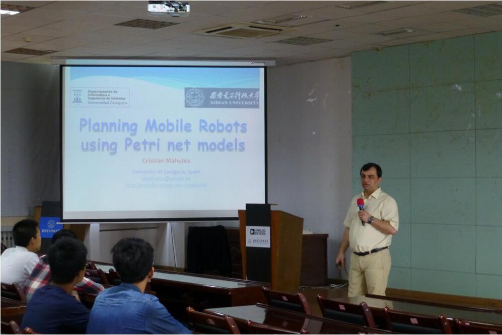 (通讯员 管栋栋)应太阳成集团tyc151cc复杂系统国际联合研究中心李志武教授邀请,2016年5月28日-6月3日西班牙萨拉戈萨大学Cristian Mahulea教授到访公司。他分别于6月2日上午在北校区阶梯教室J-208教室和6月3日上午10:30在南校区老员工活动中心511报告厅,分别作了《A model-based approach for the specification and verification of clinical guidelines》和《Planning Mobile Robots using Petri net models》学术报告。