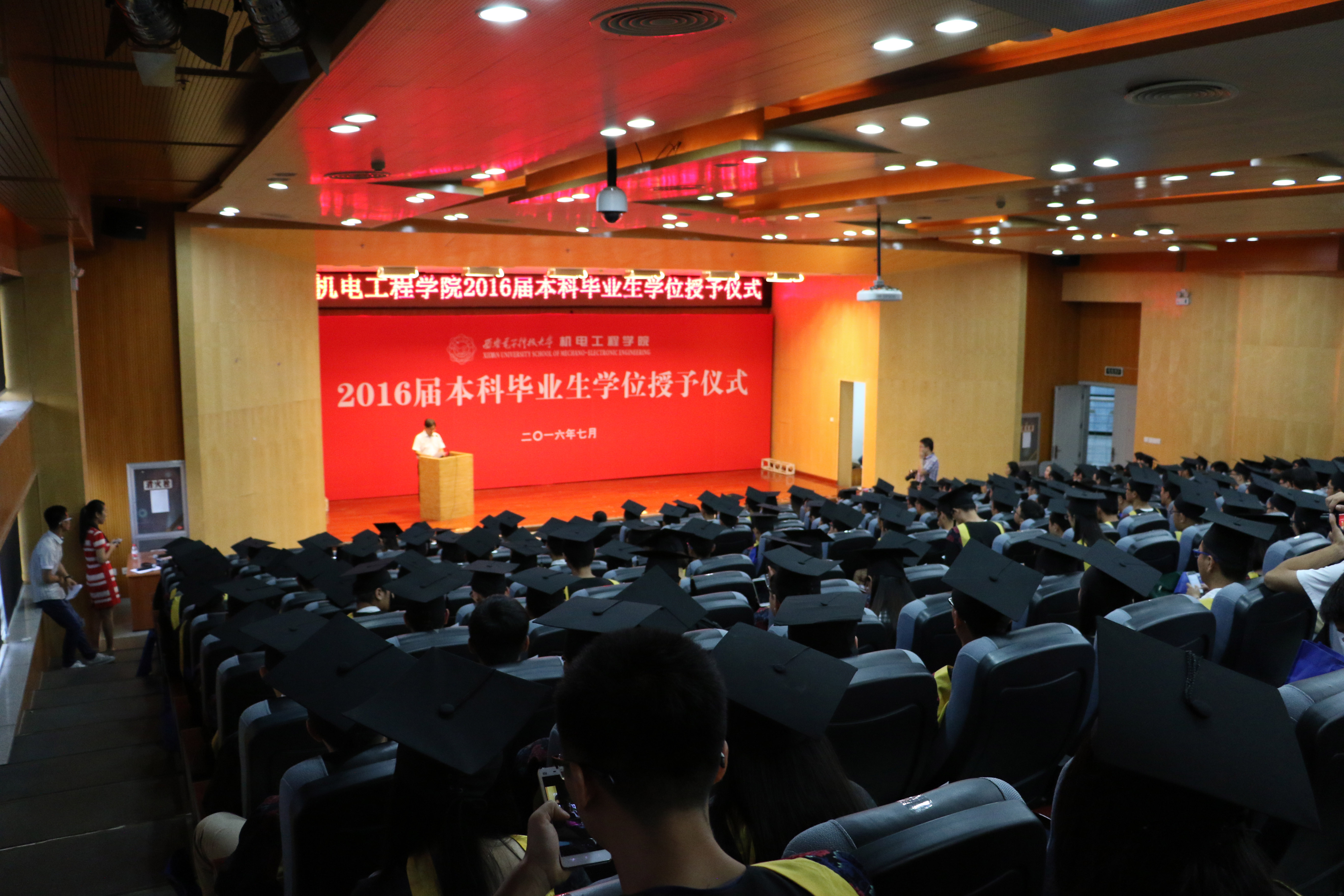 问起毕业季印象最深的是哪项活动?“当然是授位仪式啦,那一刻才感觉自己真正的毕业”闫闯同学兴奋地说。7月1日19:30,图书馆四楼报告厅温情满满,太阳成集团tyc151cc的2016届本科生授位仪式隆重举行。同学们排着整齐的队伍,在主持人宣读自己的名字后,依次登上了主席台。伸手、握手祝贺、颁授学位证书、行拨穗礼、合影,仇原鹰和李团结两位教授为206名毕业生代表依次授位,并对每一位同学表示祝贺。