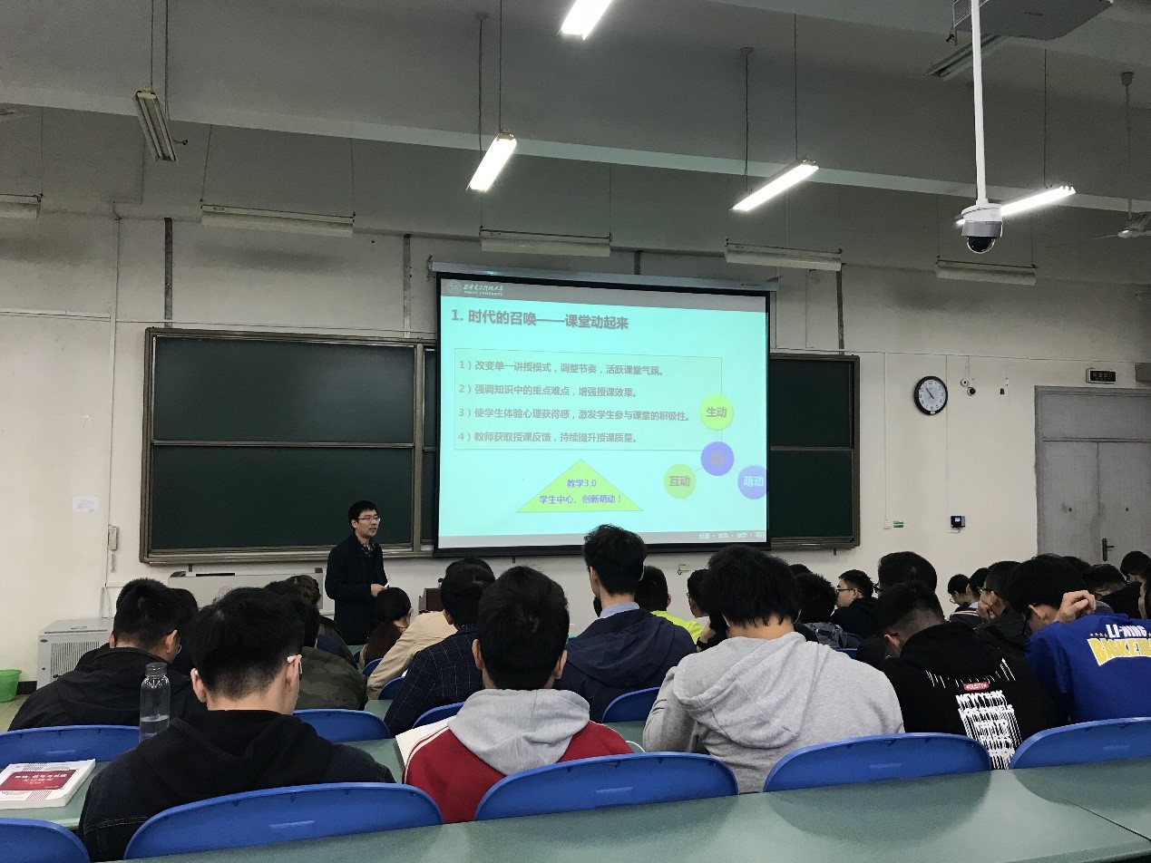(通讯员:李治霖、蔡洋洋)10月25日上午,在公司首届本科公司产品节举办之际,作为公司系列活动之一,太阳成集团tyc151cc在南校区B-434组织如何利用信息化工具开展有效师生互动的专题讲座。公司邀请段学超教授走进1604041班员工课堂,以所讲授的自动控制原理课程为例,运用“雨课堂”等教学工具,给员工们带来了“雨课堂,发现前所未有的你”的精彩讲座。