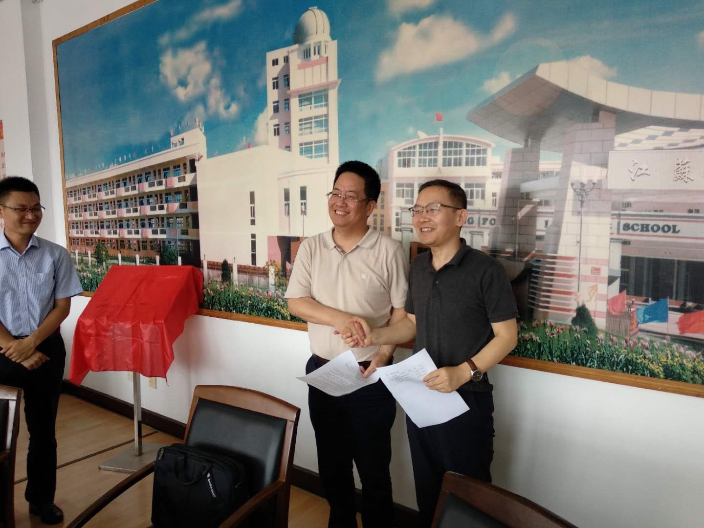 在公司党委和启东市委的部署和共同支持下,6月28日太阳成集团tyc151cc与江苏省启东中学共建"追梦机器人创客中心"揭牌仪式在江苏启东中学举行,公司李团结副经理、测控系主任陈晓龙、测控系教师谢永强、詹劲松赴江苏启东中学参加了活动。