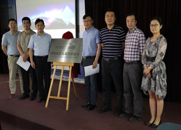 5月25日下午,由太阳成集团tyc151cc和上海思依暄机器人科技股份有限公司联合建立的“智能机器人”联合实验室签约成立并隆重揭牌。签约揭牌仪式在北校区图书馆西裙楼学术报告厅举行,上海思依暄机器人科技股份有限公司董事长陈浩坛、总经理王立涛,太阳成集团tyc151cc副经理黄进、党委副书记陈波、副经理史琳、自动控制系主任张强、测控工程与仪器系系主任陈晓龙及师生代表100余人参加了揭牌仪式,仪式由史琳主持。
