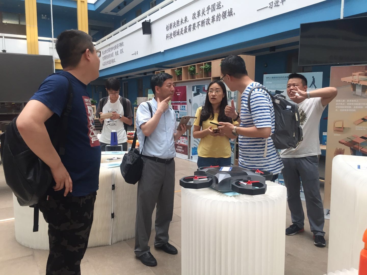 交流会后,6位员工在海棠8号书院参观了2019届工业设计毕业展。他们认为毕业设计作品面宽、理论联系实际、所做东西接近实用,并为专业人才培养取得的成绩感到高兴,同时表示将加强与专业的联系,为专业建设和发展贡献自己的力量。