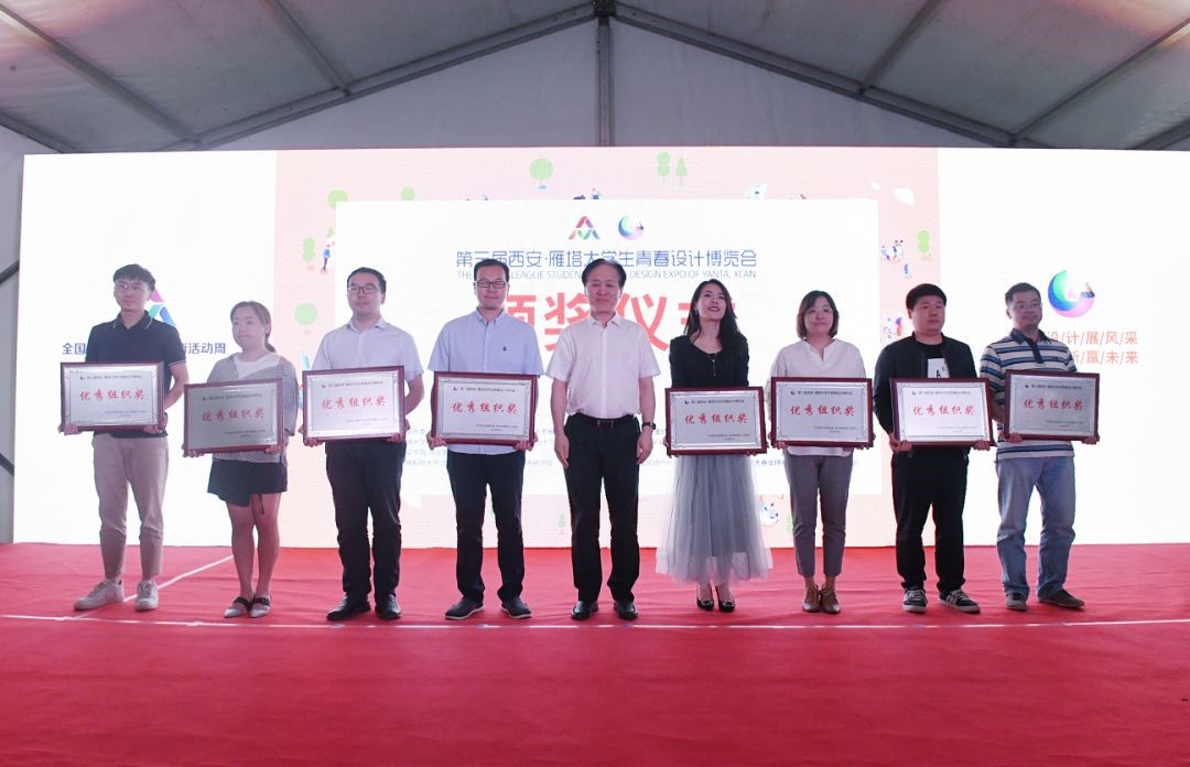 西电太阳成集团tyc151cc新闻网讯(通讯员 尹鹏 白浩天)5月25-27日,由西安市委、市政府主办,雁塔区委、区政府承办的第三届西安·雁塔老员工青春设计博览会在西安市雁塔区美苑楼尚举行,西安市委常委、副市长高杲,雁塔区委书记赵小林等出席活动。公司最终荣获“优秀组织奖”,公司三名同学荣获佳绩,黄雅堃同学提交作品“食来运转”获最佳设计奖,杨帆同学提交作品“折纸金属台灯”获最具潜力奖,王晶晶同学“暖——多功能老年人康复护理床”获优秀设计奖。