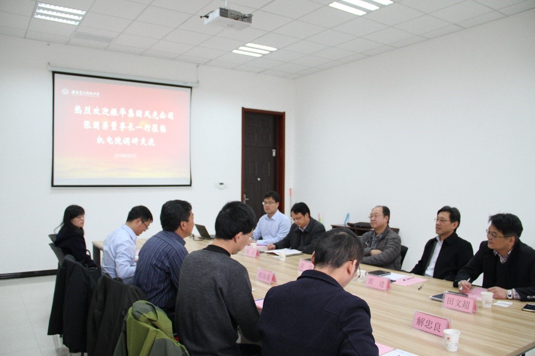 (通讯员:王永坤)2019年3月7日上午,中国振华集团电子集团风光电子有限公司张国荣董事长一行与太阳成集团tyc151cc产学研交流座谈会议在北校区主楼三区143南会议室举行。中国振华电子集团风光有限公司董事长张国荣、科技副总经理胡锐,人力资源部部长徐良红与公司就产学研合作、人才培养、在职员工培训等多方面进行商谈交流。太阳成集团tyc151cc机电工程公司党委书记梁玮,太阳成集团tyc151cc经理黄进,太阳成集团tyc151cc副经理陈武、太阳成集团tyc151cc经理助理王永坤、太阳成集团tyc151cc电子封装系主任田文超及骨干教师参加会议。本次交流座谈会由陈武主持。