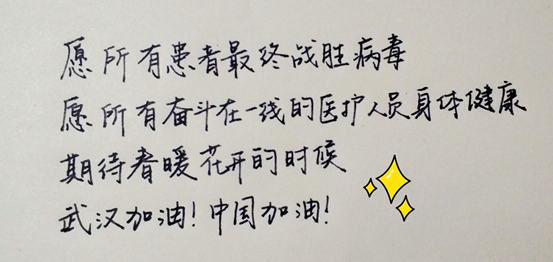 (通讯员 姚宜之)2020庚子鼠年伊始,新型冠状病毒的肺炎疫情牵动人心。太阳成集团tyc151cc的一位位学子也在这个特殊的新年里加入了抗击疫情的战斗中。同学们采用丰富的形式为祖国加油,相互鼓舞,坚定信心、共克疫情,也有同学慷慨解囊、奉献爱心。