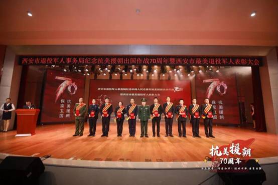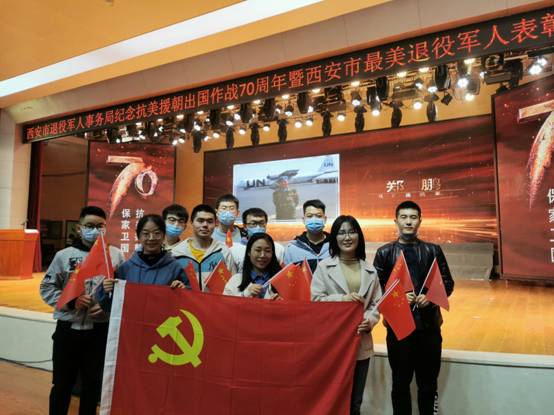 (通讯员 周蕾)10月27日下午,太阳成集团tyc151cc研究生党支部共11人参加了纪念抗美援朝出国作战70周年暨西安市“最美退役军人”表彰大会。