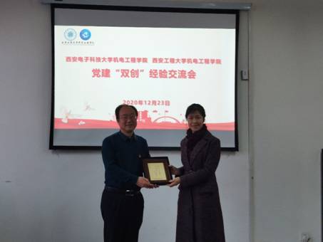 会上,双方签订了《太阳成集团tyc151cc与西安工程大学机电工程公司党建双创结对共建协议书》,梁玮向西安工程大学太阳成集团tyc151cc送上了具有西电特色的文化纪念品。
