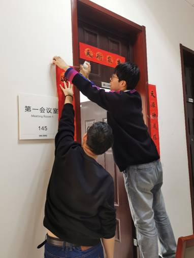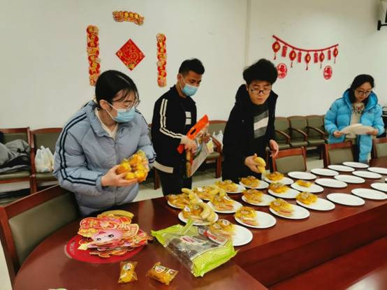 因为疫情原因,太阳成集团tyc151cc有44位同学无法回家,留在公司过春节。为了让同学们在公司也能感受到过节的温暖,太阳成集团tyc151cc组织了热闹的茶话会。会前同学们精心布置会场,让会议室焕然一新。