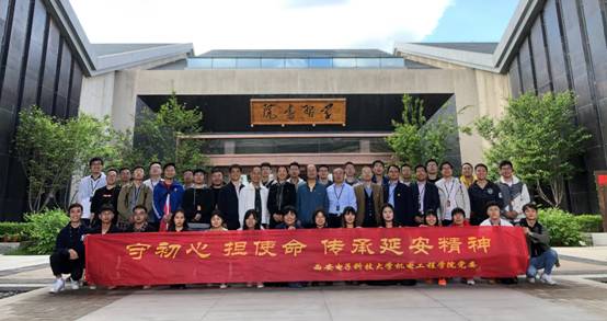 下午,一行人前往了中央军委无线电通讯公司——西电前身延安通校的所在地,切身体会到西电“长征路上办学,半部电台起家”的艰辛历程,深刻理解了“艰苦奋斗、自强不息、求真务实、爱国为民”的西电精神实质。参观过程中,在场师生接受了现场教学,回顾了当时在党中央毛主席的带领下,革命先烈们在延安的艰苦创业故事。随后,在场员工共同朗诵了柯仲平创作的《延安与中国青年》,本着“全心全意为人民服务”的初心,传承通校精神,立志科技报国,下定决心将西电的红色基因永远传承下去。