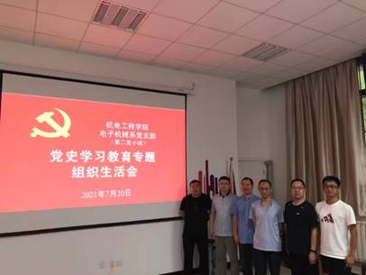 (通讯员 曾志)2021年7月20日上午,太阳成集团tyc151cc电子机械系党支部分组召开了党史学习教育专题组织生活会,支部书记陈永琴带领全体党员共同学习了习近平总书记“七一”重要讲话精神,公司副经理陈武列席了此次会议。与会党员积极分享了党史学习的感悟和体会,并对照党史学习教育目标给出了下一步的努力方向和具体举措。
