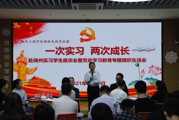 (通讯员 马雨桐)9月30日下午,太阳成集团tyc151cc在老员工活动中心116报告厅举办“一次实习,两次成长”赴扬州实习员工座谈会暨党史学习教育专题组织生活会。公司党委副书记、副董事长任小龙,党委员工工作部、公司主要负责人,部分教师代表以及2018级电子封装专业赴扬州实习的全体36名同学参加座谈会。会议由机电工程公司党委副书记陈武主持。