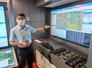 王洪涛在演示无人机集群虚实结合半实物推演仿真系统