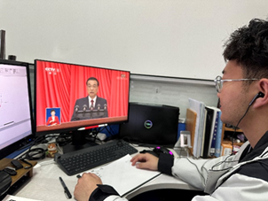 测控与仪器系硕士党支部组织全体党员以集体学习和个人自学的方式观看本次两会盛况,并开展热烈讨论。卫佳明同学表示,通过观看开幕会,自己对党在过去的五年时间的伟大成就有了一个更为明晰的了解,也深刻意识到党的领导在夺取脱贫攻坚胜利成果,实现第一个百年目标这一伟大进程中所起到的决定性作用。抗击疫情三年来所取得的伟大胜利也同样彰显着我们党始终坚持“人民至上”的原则,始终代表着最广大人民群众的根本利益,也凸显出中国特色社会主义制度的优越性。之所以能够取得如此瞩目的成就,与党坚强有力的领导是密不可分的。恰逢国际局势波诡云谲,全球经济下行的特殊关头,我们应更紧密地团结在以习近平同志为核心的党中央周围,以习近平新时代中国特色社会主义思想为指导,在迈向下一个百年目标的伟大征程上踔厉奋进、勇毅前行!