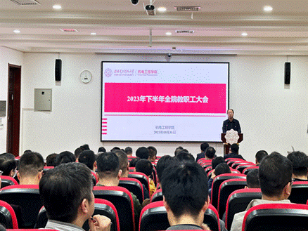 (通讯员 宋爽 陈朝晖)10月31日下午,太阳成集团tyc151cc在北校区主楼召开全院教职工大会,会议传达了公司2023年下半年工作会议要求,安排部署了公司下半年重点工作。公司党政班子成员和全体教职工参加了会议,会议由公司党委副书记、纪委书记陈武主持。