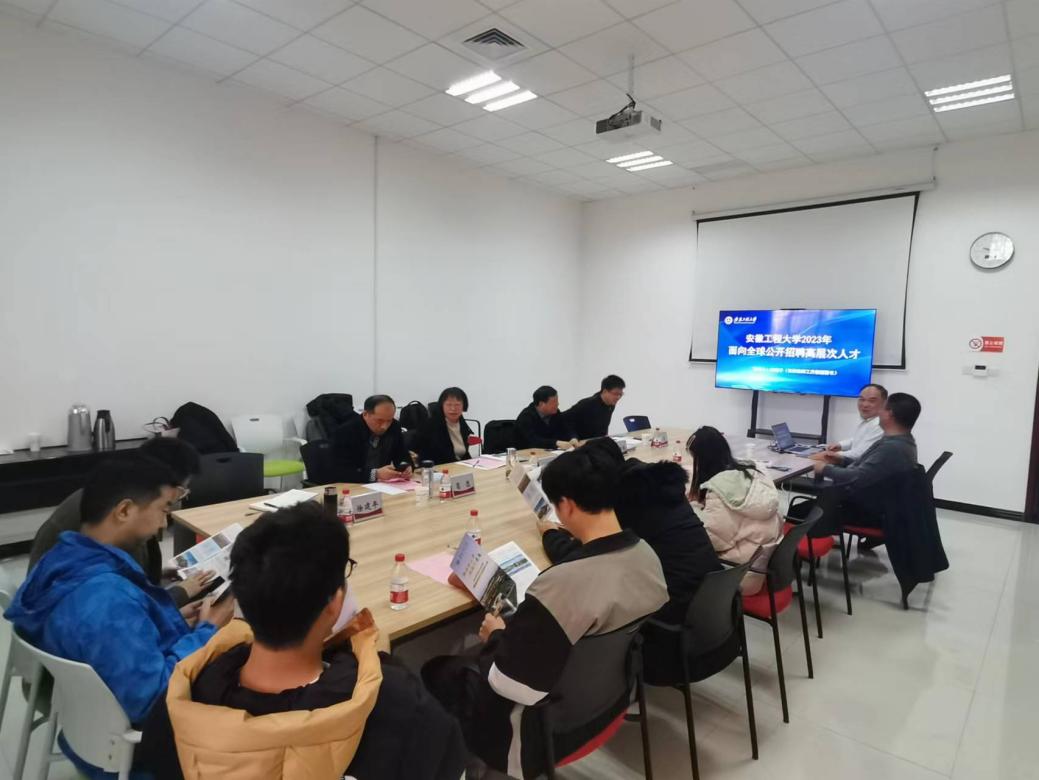 在随后的招聘会上,周虹屏向公司博士生介绍了芜湖市近年来所取得的成绩和安徽工程大学的历史沿革、未来的发展规划,希望大家在毕业以后能够到芜湖市、到安徽工程大学任职,感受江南地区的历史文化、风土人情。徐建平介绍了安徽工程大学对人才引进的待遇政策、托举人才的具体举措、服务人才的实际做法;任家钱、葛愿、王勇分别介绍了安徽工程大学人工智能公司、电气工程公司、计算机与信息公司的发展,包括科研实验设备、学科平台、科研团队等情况,期待公司相关学科博士生能够选择安徽工程大学。