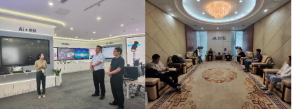 29日下午,公司一行访企拓岗的最后一站来到了科大讯飞股份有限公司。通过参观公司产品展厅,详细了解了讯飞AI在教育、城市、医疗、工业等多个领域取得的成果,并实际体验了多语种语音识别、智能文档与图片生成、报表分析与生成等多个场景下的实际应用。座谈会上,公司招聘总监王祯介绍了科大讯飞近几年在西电的招聘情况与公司人才培养情况,并表示希望能进一步扩大科大讯飞在公司的影响力,从而招聘到更多优秀人才。沈强与陈武表示通过参观交流,对科大讯飞的行业头部地位及技术优势有了更清晰的认识,希望后续双方继续加强在人才培养、科研项目、校企合作等方面的深入交流。