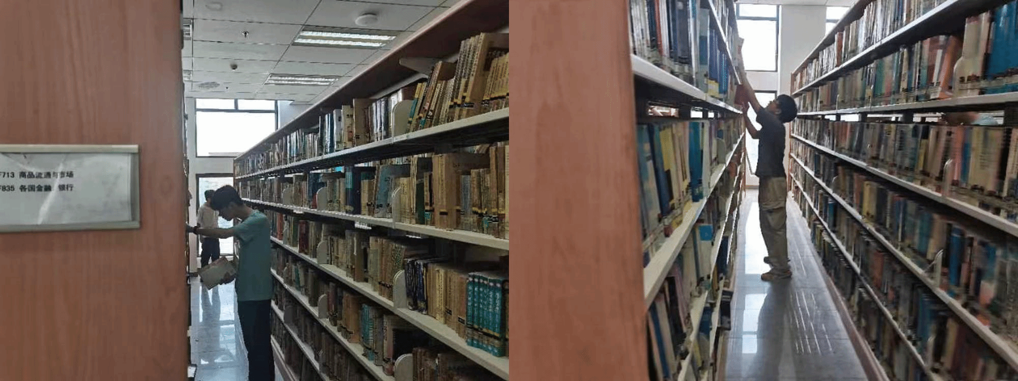 早上8点半,员工党员准时在图书馆一楼进行集合和签到,图书馆的惠老师首先带领大家学习了图书馆书籍整理的知识和相关注意事项。接着同学们便在阅览室一层和四层开始了细致的书架整理工作。在整理图书时,将图书放回到正确的位置需要专业的图书排列知识以及对各门各类图书位置的熟悉,考虑到该项任务的专业性,而志愿者们又缺乏长期工作的经验,在本次志愿活动中,负责人只要求志愿者根据书籍的编号信息,将地上的图书有序放回书架。党员们展现出极高的耐心和专注度,经过努力,书籍被恢复到其应有的秩序,书架再次呈现出井然有序的面貌。在深切体会图书馆管理工作艰辛的同时,毕业生党员在志愿服务的过程中切实体会到了为师生办实事和担当先锋模范的充实感和自豪感。机械设计制造及其自动化第二党支部王桂琛表示,今天到图书馆来整理书籍,给我们带来了一次别开生面的活动体验,二线书库里有很多泛黄的老旧书籍,书味特别浓,让我们切身感受到了“文化的熏陶”,另外这次活动作为党课的志愿活动,应该属于我们本科阶段最后一次为公司服务,重温了我们党员的使命担当,也是对培养了我们四年的公司做一次小小的回报。