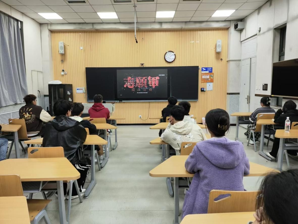 26日晚上,公司在南校区C-128组织同学们集体观看爱国影片《志愿军--雄兵出击》。该影片以抗美援朝战争为背景,通过真实的历史事件和人物塑造,展现了中国人民志愿军在极其艰苦的环境下依然英勇奋战、矢志不渝的伟大精神,展示出革命先辈不畏艰险、前赴后继的不屈意志。观影过程中,同学们全神贯注,沉浸在影片的紧张氛围和感人故事中。大家通过观看电影,深刻地认识到抗美援朝战争的历史意义,感受到战争中中国人民之间的深厚情谊,在观影中仿佛置身于那个激情燃烧的岁月。大家均为志愿军战士们的勇敢而赞叹,为他们的坚韧而感动。