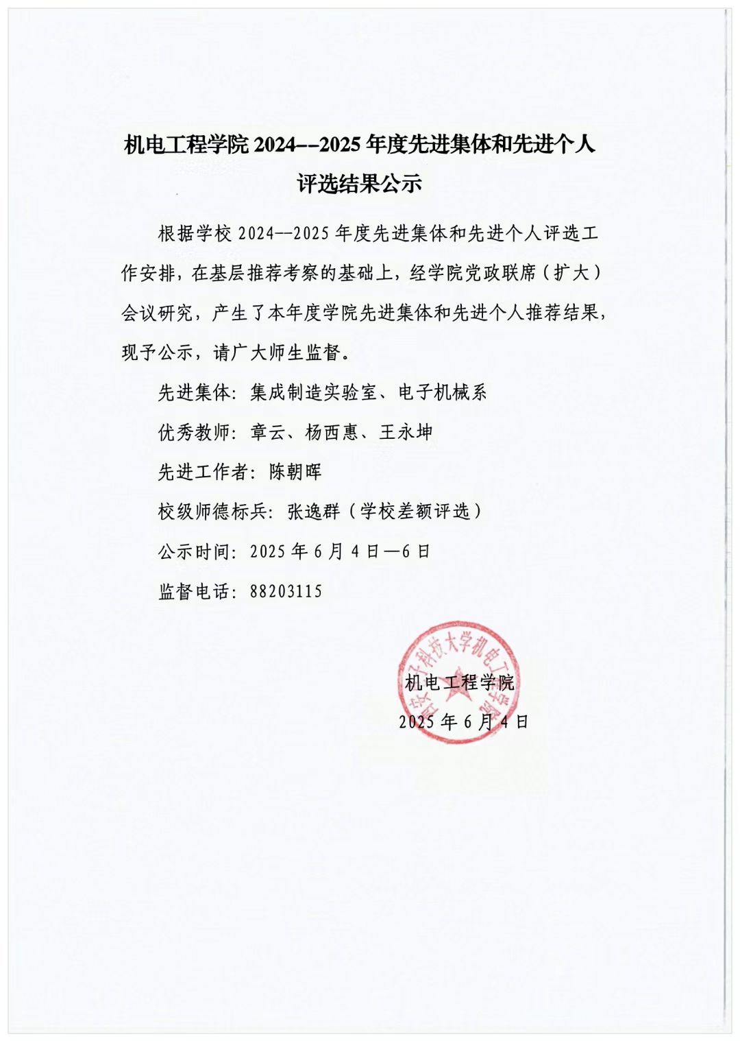 太阳成集团tyc151cc2024-2025年度先进集体和先进个人评选结果公示