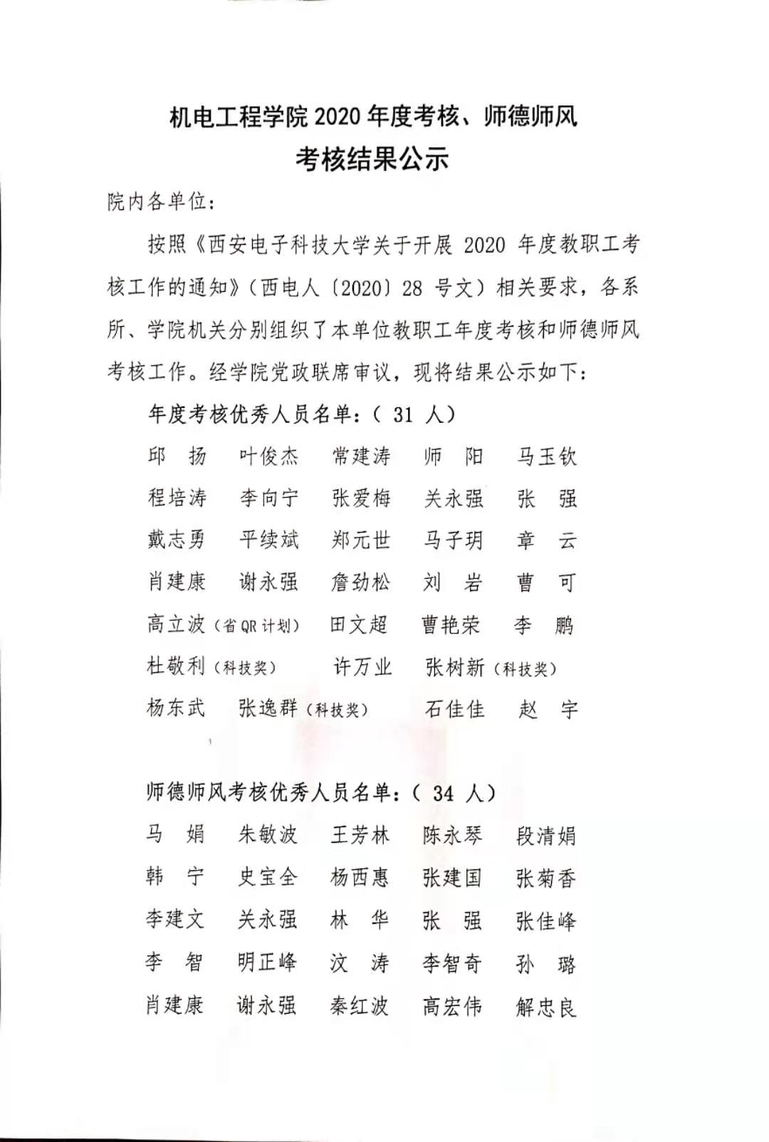 太阳成集团tyc151cc2020年度考核、师德师风考核结果公示