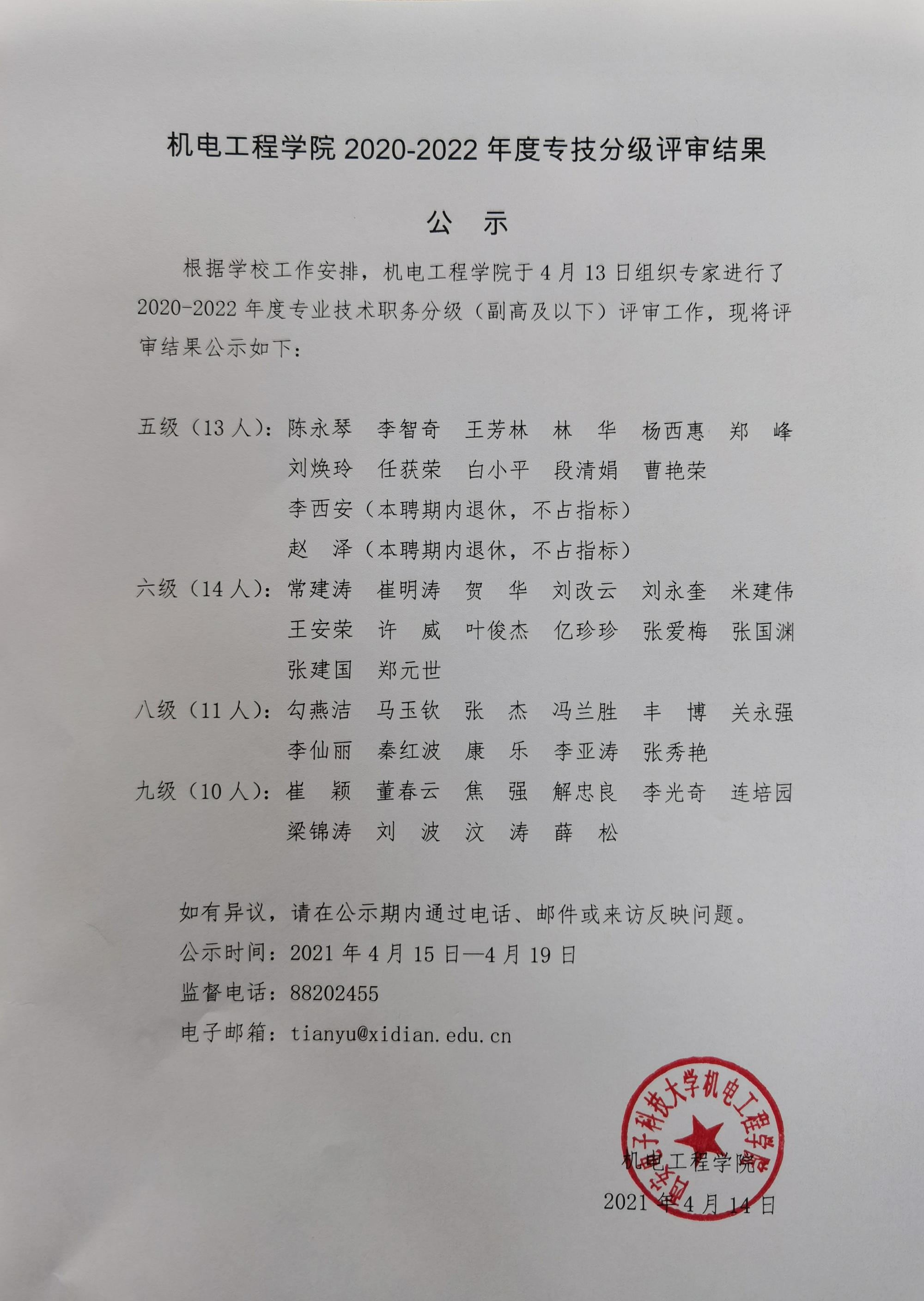 太阳成集团tyc151cc2020-2022年度专技分级评审结果公示