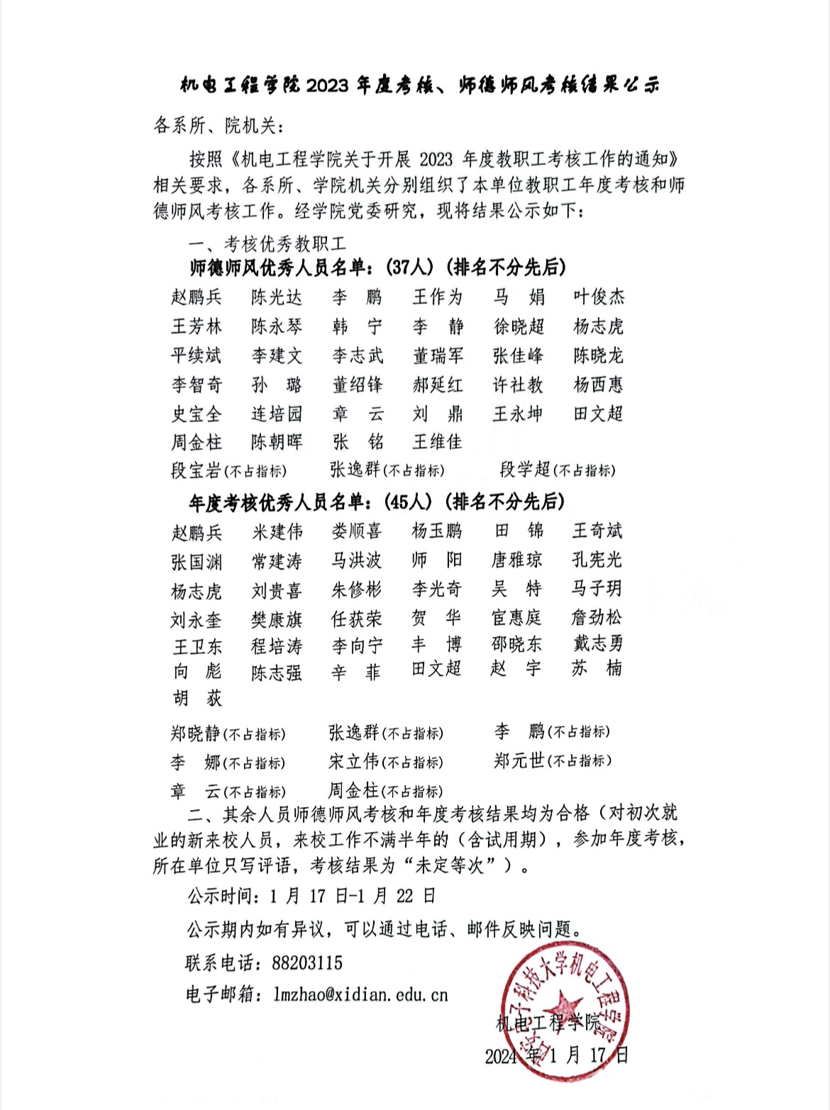 太阳成集团tyc151cc2023年度考核、师德师风考核结果公示(公示期已过)