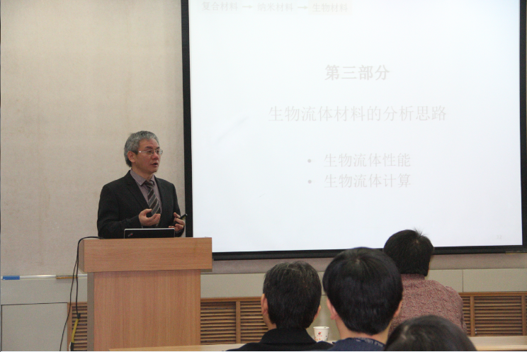 报告中,薛向东博士从材料发展的历史讲起,就材料与结构及其之间的关系、复合材料结构化的基本原则以及各相材料的尺寸和材料之间的界面等对复合材料性能的影响进行了系统的阐述。随后,介绍了新兴纳米结构材料的力学和热传导特性,并基于其提出的复合材料结构化原理探讨了热界面材料及其在电子封装结构热能传递中的应用、存在的问题和发展前景。最后,薛博士详细介绍了生物流体材料的力学特征以及与之相关的计算方法。整场报告内容丰富,涉及的领域包括机械设计、固体和流体力学,以及纳米和复合材料、热设计和电子封装等多个学科,极大地拓展了在场师生的研究视野和思路。