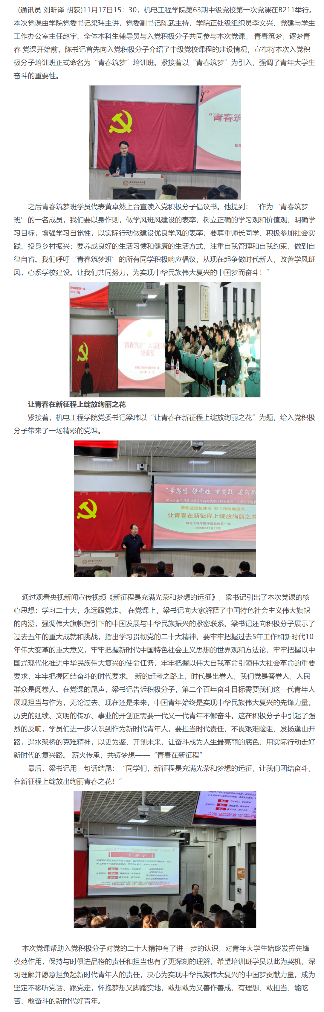 青春筑梦,砥砺前行 | 太阳成集团tyc151cc第63期中级党校第一次党课圆满结束