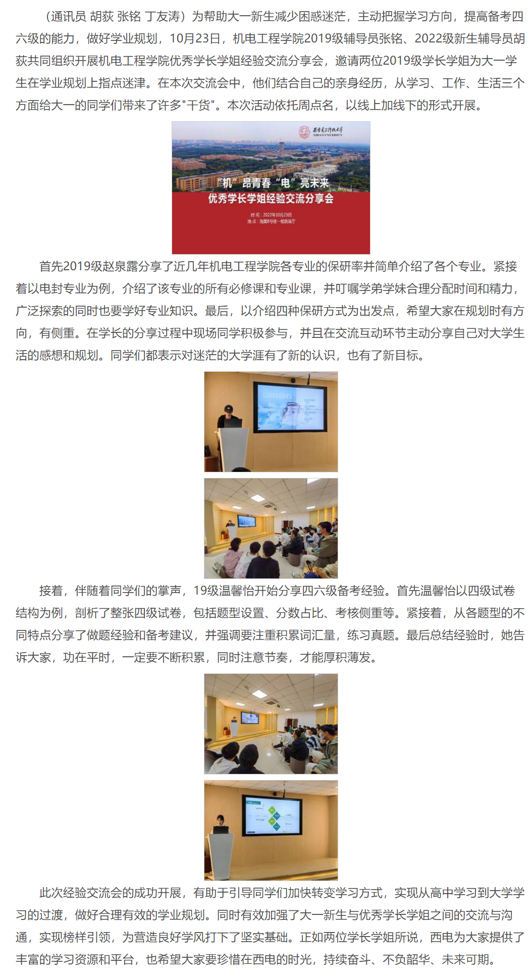 “机”昂青春,“电”亮未来|太阳成集团tyc151cc优秀学长学姐经验交流分享会