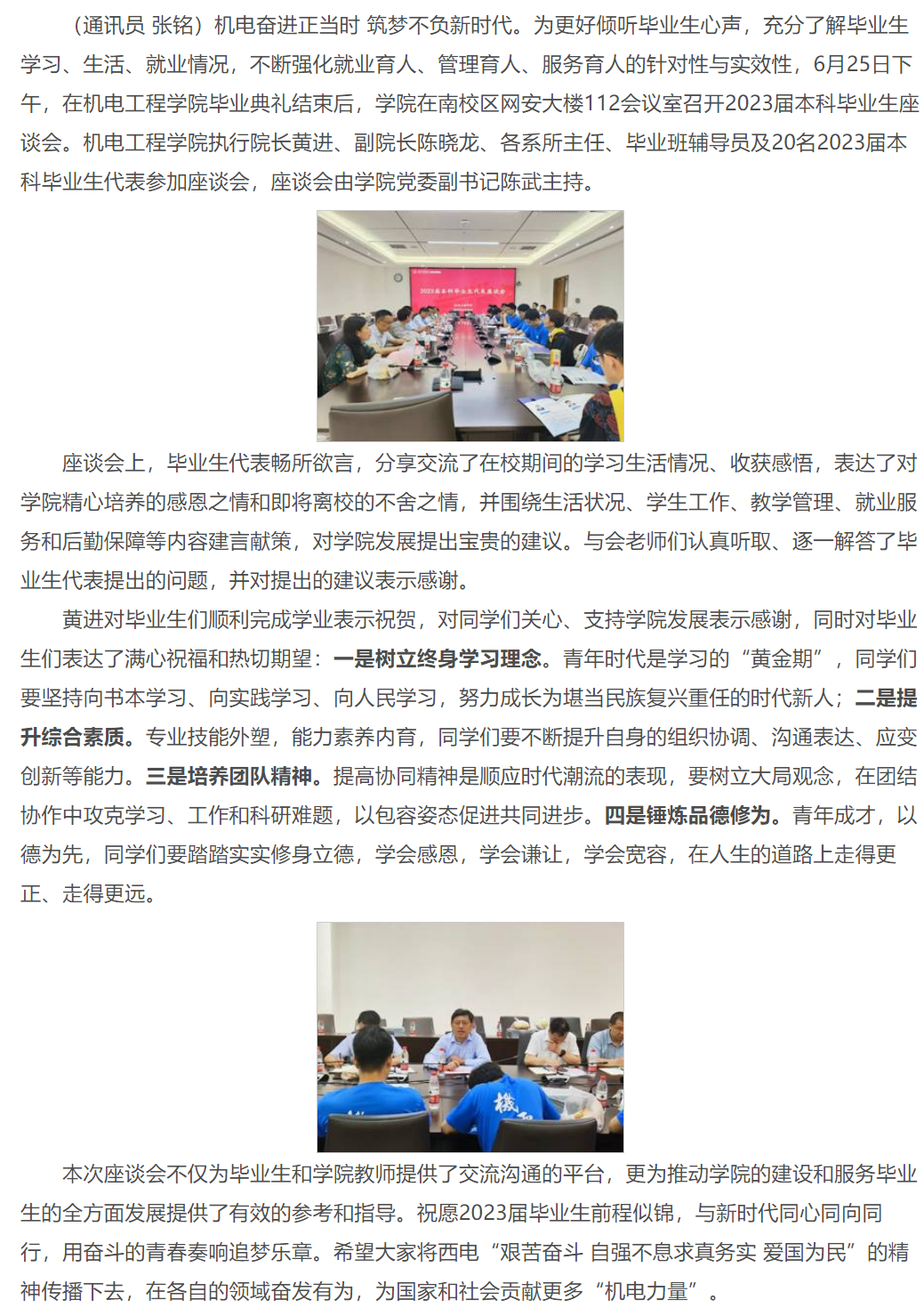 【毕业季】太阳成集团tyc151cc举办2023届本科毕业生座谈会