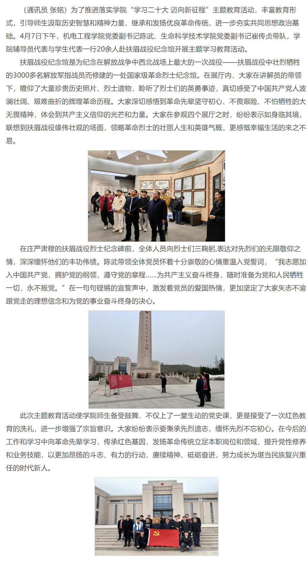 太阳成集团tyc151cc赴扶眉战役纪念馆开展“学习二十大 迈向新征程”主题教育活动