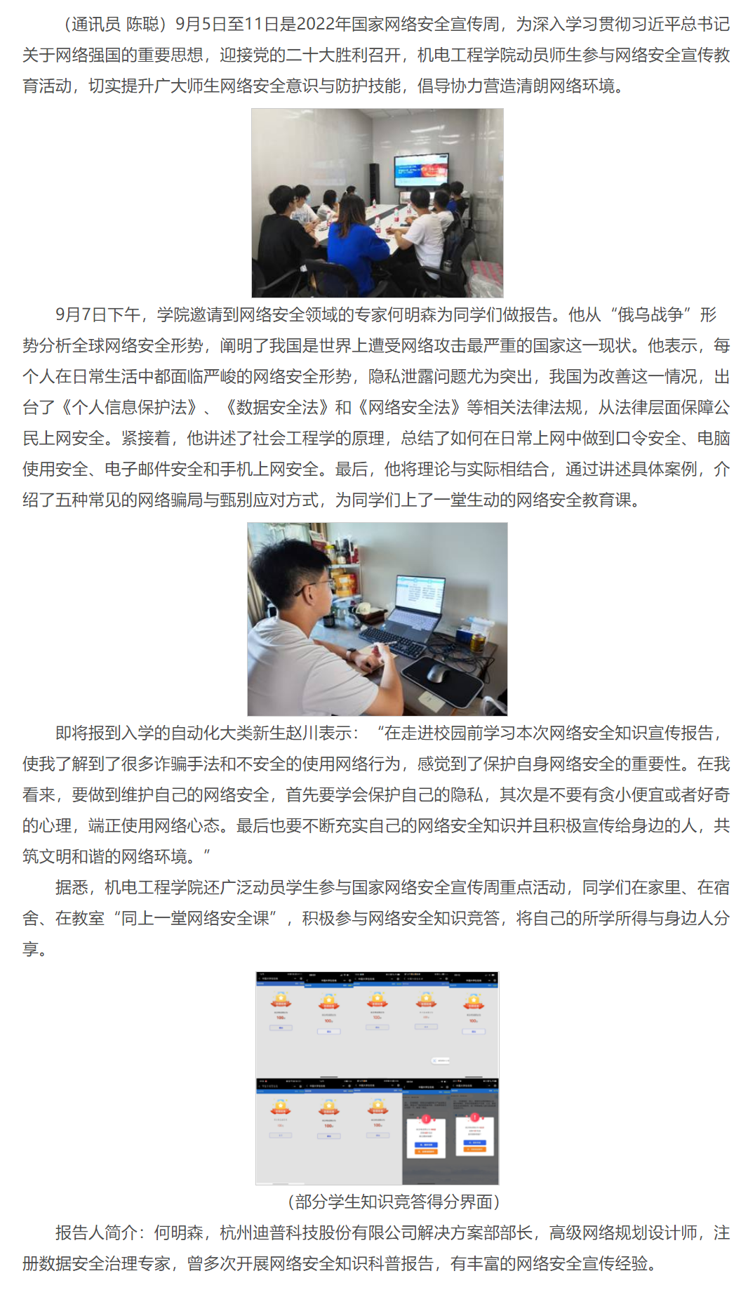 提高网络意识,筑牢安全防线丨太阳成集团tyc151cc动员师生参与网络安全宣传教育活动