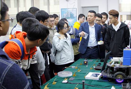 在萨默尔机器人公司,同学们参观了机器人的主体研发、软件开发、装配生产等实验室,实地感受了现代科技公司的生产研发、市场管理过程。通过工作人员讲解,同学们了解了现阶段销售的主流机器人的特点和目前市场与行业对人工智能未来发展前景的预期。公司的科技氛围和现代感,使同学们深入了解了自己所学专业在实际生产生活中的应有,引发了同学们对于理论知识与科技发展的思考,也使同学们认识到了科技创新的价值所在。
