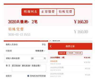 面对本次疫情,公司多名党员主动通过武汉慈善总会、陕西慈善总会、村委会、交纳特殊党费等渠道自发捐款,为疫情防控工作贡献爱心。博士班第二党支部聂鹏、丛旭亚通过“机电先锋号”各交纳特殊党费500元用于支援疫情防控、博士班第三党支部王柯交纳特殊党费200元……截止2月19日上午10点,公司党委共收到员工党员通过“机电先锋号”交纳的特殊党费和公益捐款2625.88元。