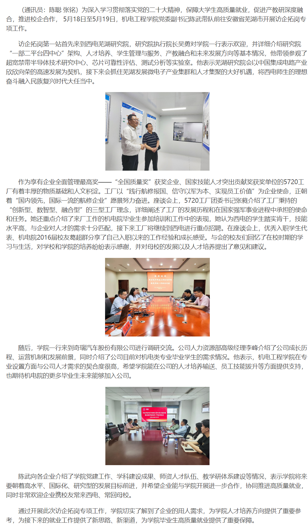 太阳成集团tyc151cc赴芜湖开展访企拓岗专项工作