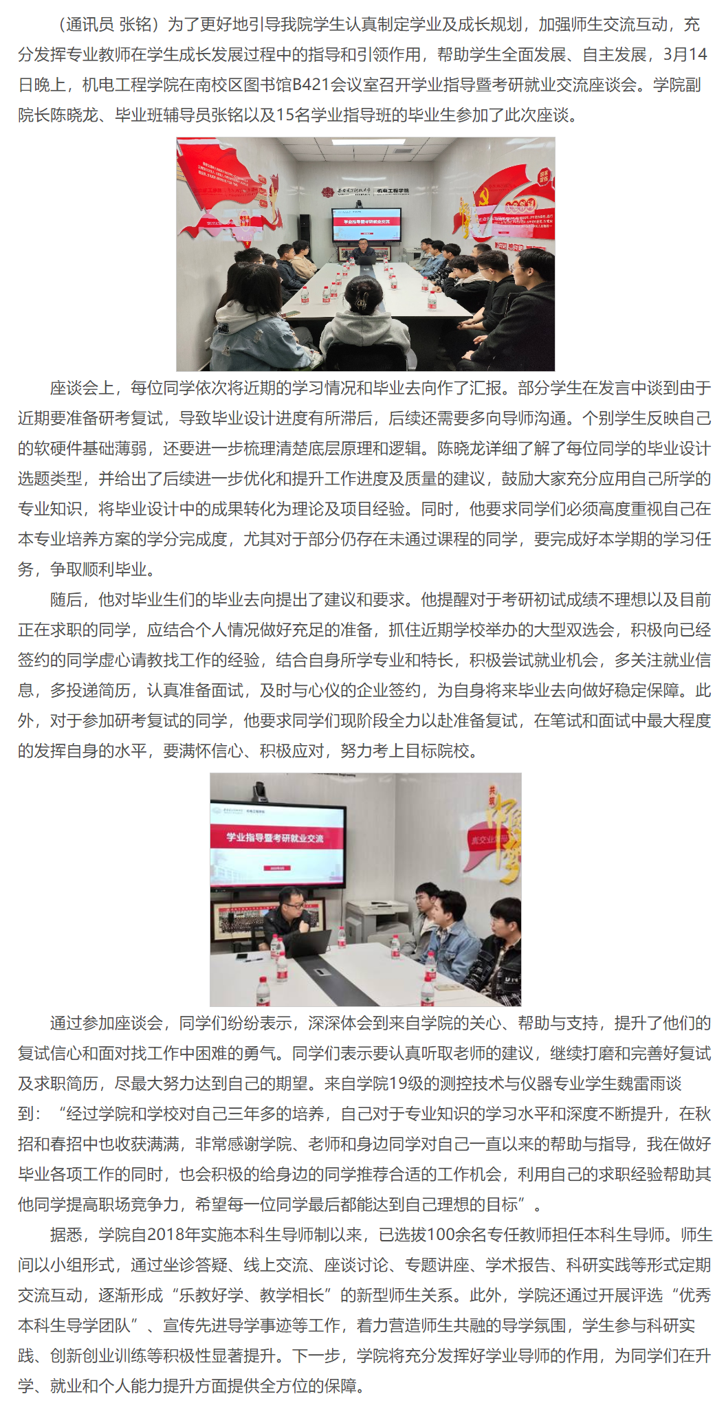 太阳成集团tyc151cc召开学业指导暨考研就业交流座谈会