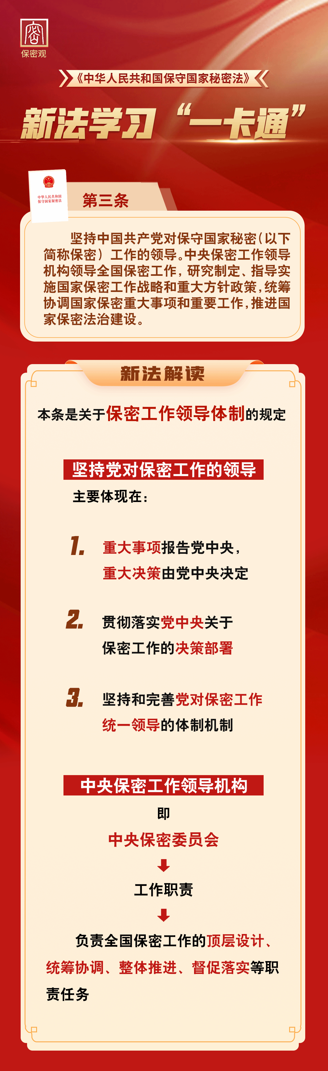37个保密宣传月 | 新法学习“一卡通”之第三条 保密工作领导制度
