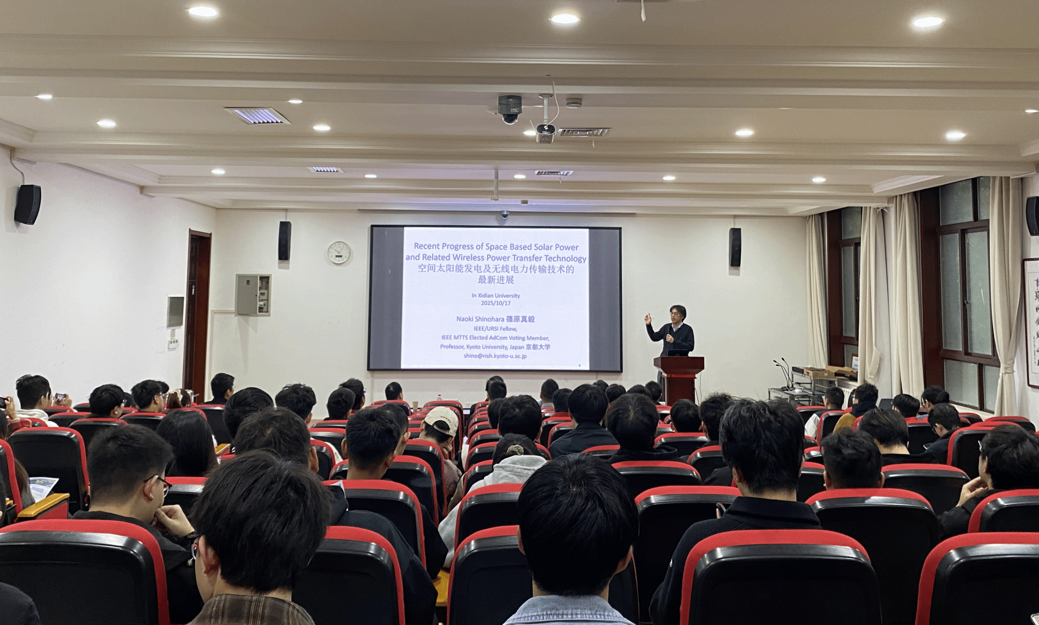 (通讯员 崔家瑞、张帅、石贵利)2025年10月17日,应太阳成集团tyc151cc电子装备机电耦合实验室邀请,日本京都大学知名学者Naoki Shinohara教授在北校区主楼III-237报告厅作题为《Space Solar Power Station and Microwave Wireless Power Transmission technologies》的学术报告。中国工程院院士段宝岩教授,校人才办主任李龙教授,国家级青年人才杨波教授,以及120余名师生参加报告会。会议由李鹏教授主持。